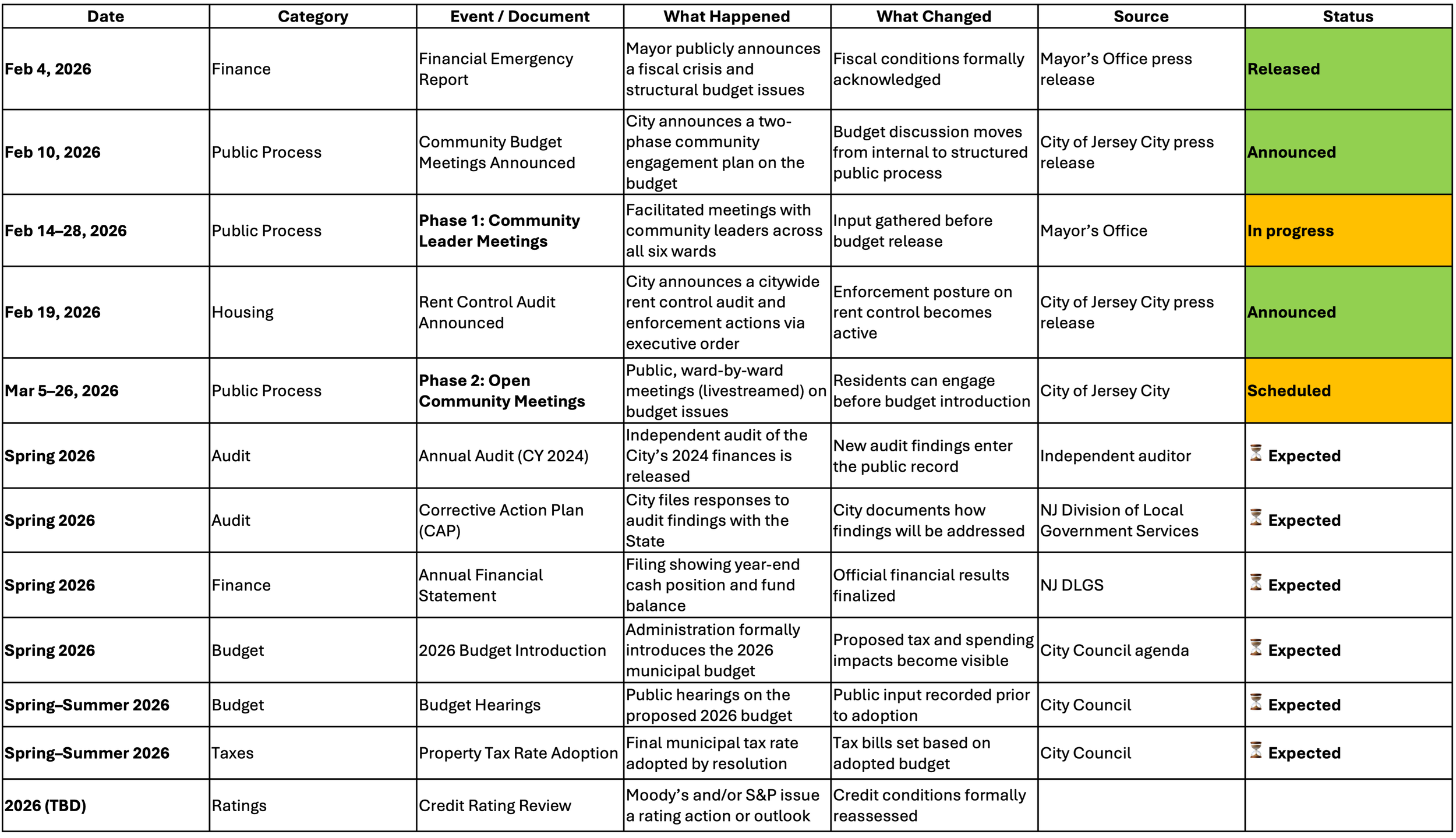 Jersey City Financial Calendar